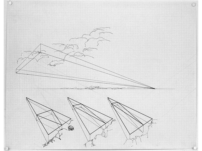 Concerned, as always, with the energy exchanges in nature, Colin began making drawings of huge geometric shapes rising from or suspended over natural landscape. They would lead to the pure spirit of the intangible sculpture, devoid of tangible materials, but sited in and acting on /with actual landscapes. Colin's Intagible Sculpture was first exhibited in a s one-man show in 1971 at the Everson Museum of Art. Subsequent one-man shows included a 1972 exhibition at the Andrew Dickson White Museum at Cornell University (and traveled under the auspices of the Gallery Association of New York) and The Finch College Museum in NYC in 1974.